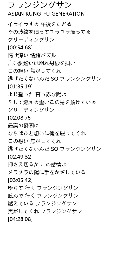 | [04:14.57] | 燃えている フランジングサン |