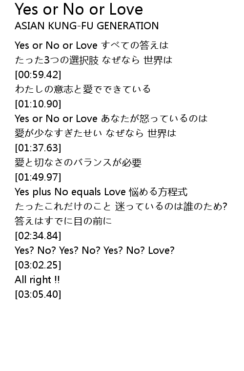 | [02:35.53] | Yes? No? Yes? No? Yes? No? Love? |