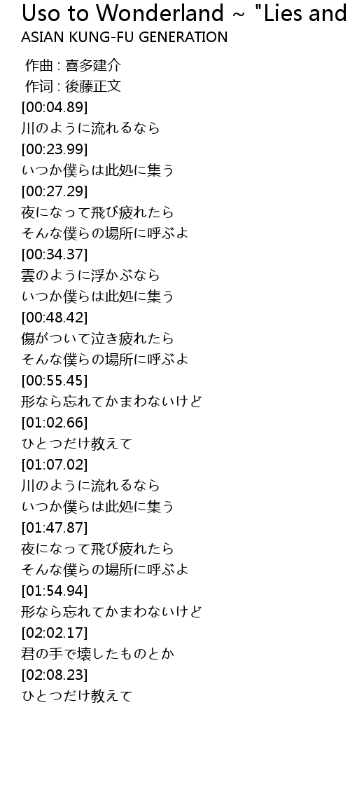| [00:01.00] | 作词 : 後藤正文 |