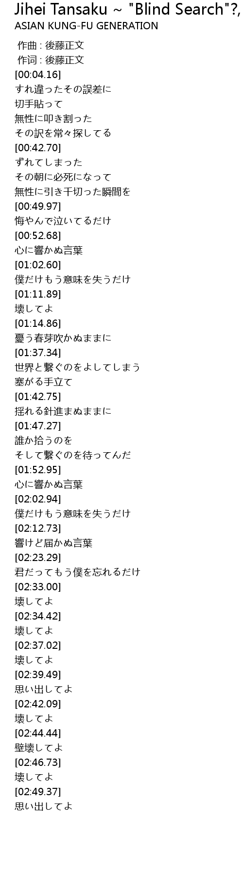 | [00:00.00] | 作曲 : 後藤正文 |