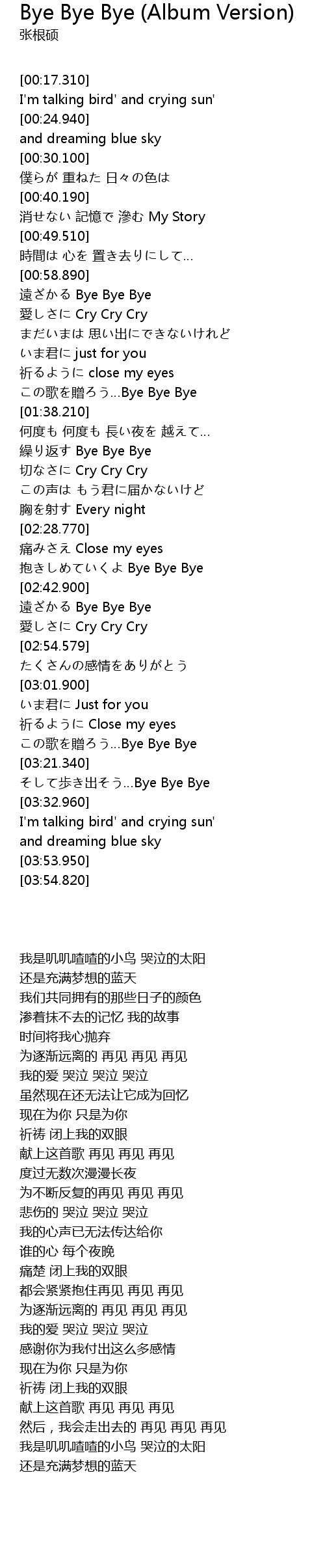 | [03:14.710] | gē zèng Bye Bye Bye |