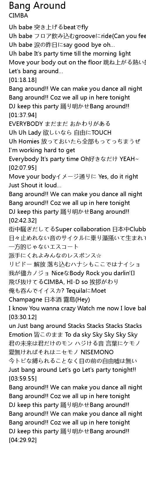 | [03:54.58] | Just bang around Let's go Let's party tonight!! |