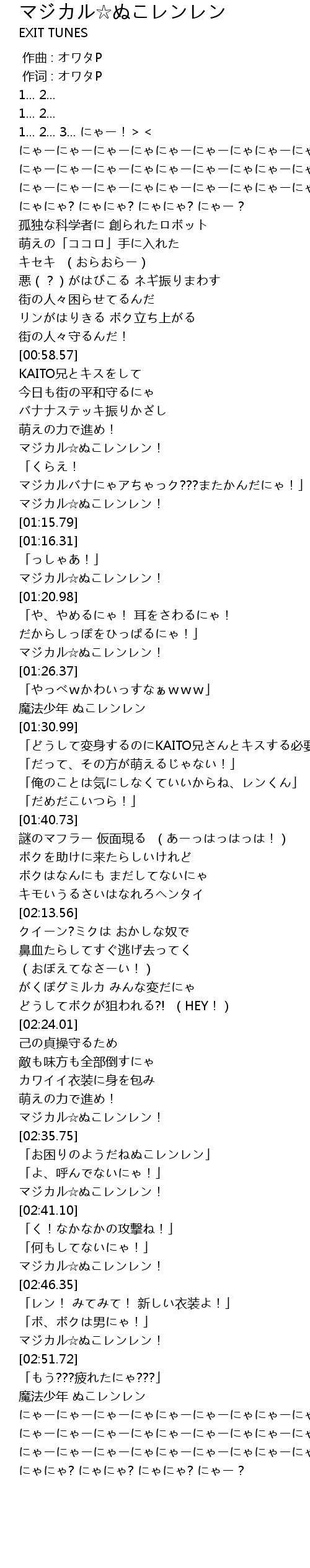 | [02:44.92] | マジカル☆ぬこレンレン! |