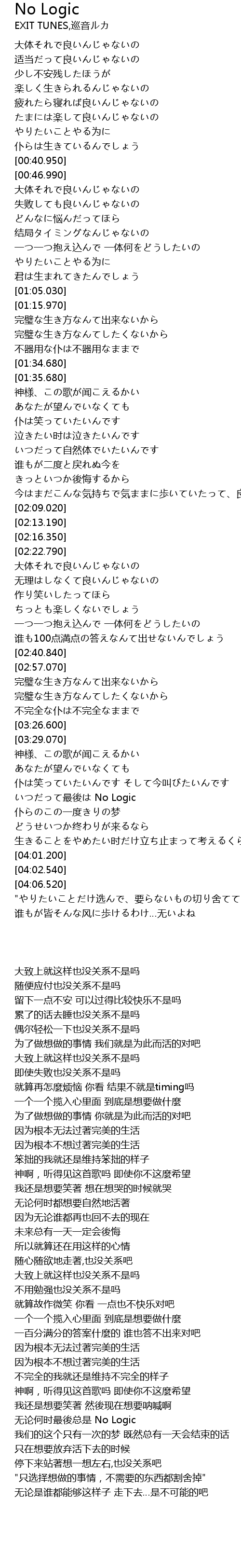 | [03:41.090] | zuì hòu No Logic |