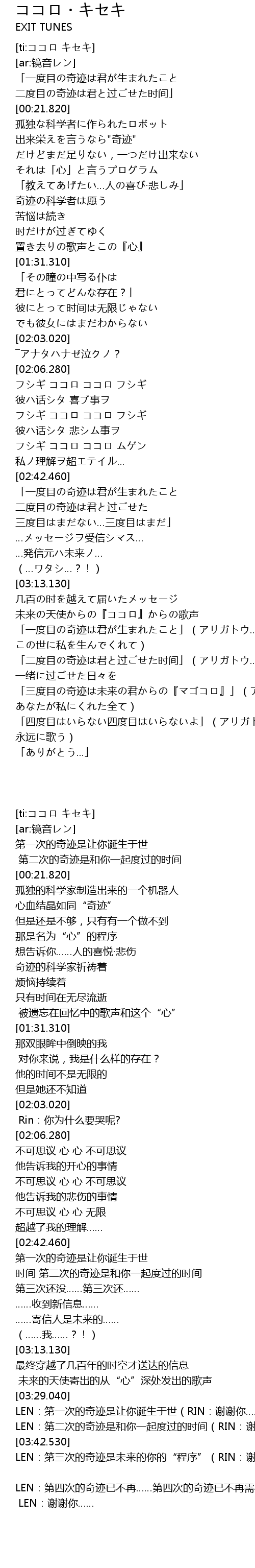 | [ti:ココロ キセキ] | |