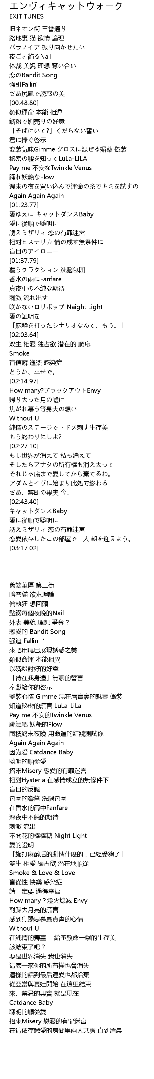 | [00:38.32] | 路地裏 猫 欲情 論理 |