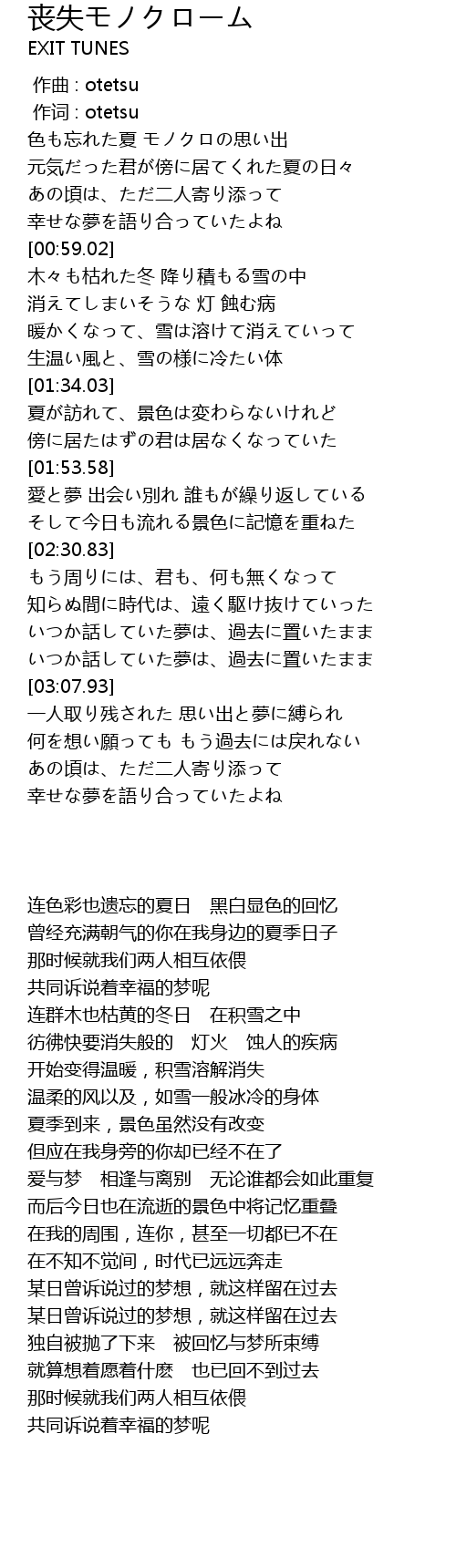 | [00:25.18] | 色も忘れた夏 モノクロの思い出 |