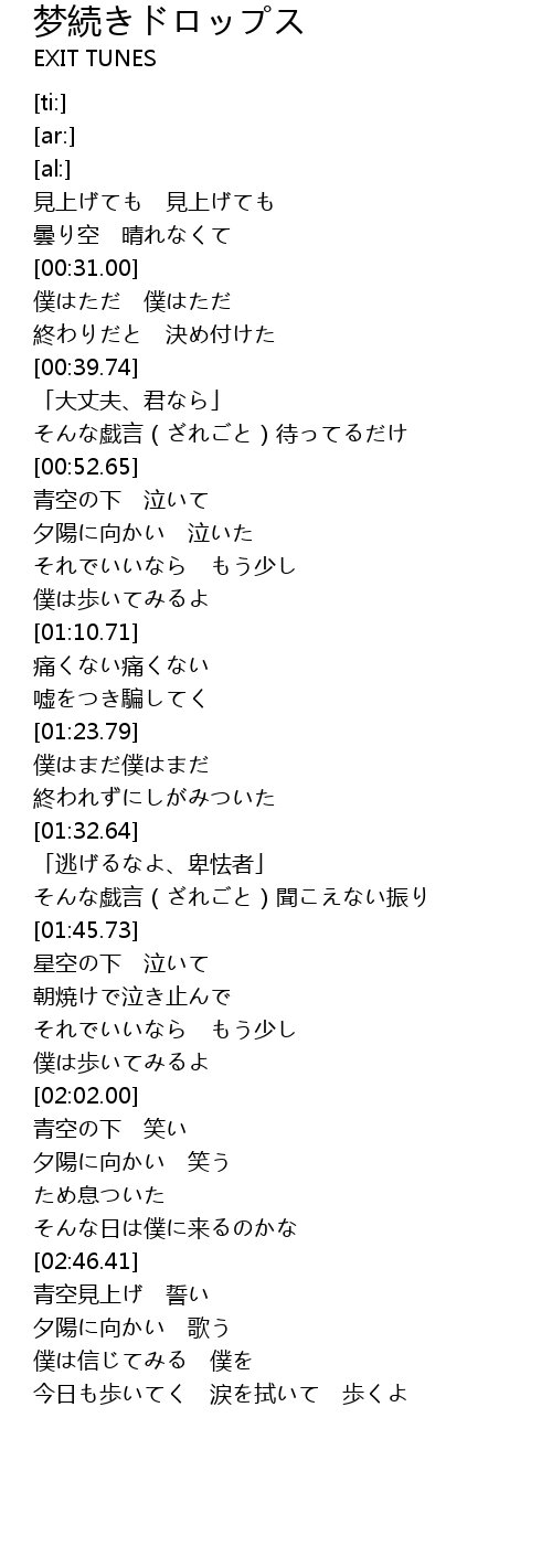 | [01:38.56] | そんな戯言(ざれごと)聞こえない振り |