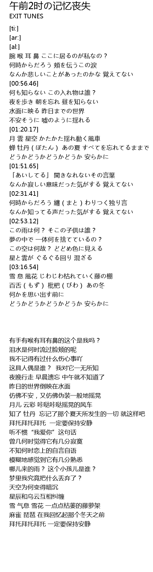 | [00:01.15] | 腕 喉 耳 鼻 ここに居るのが私なの? |