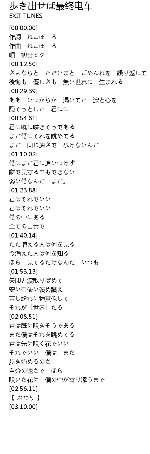 | [00:15.61] | さよならと ただいまと ごめんねを 繰り返して |