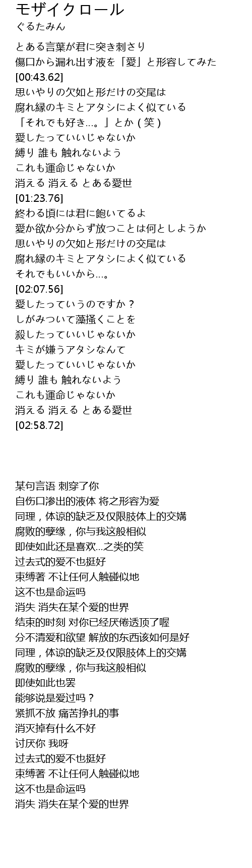 | [00:32.96] | 傷口から漏れ出す液を「愛」と形容してみた |
