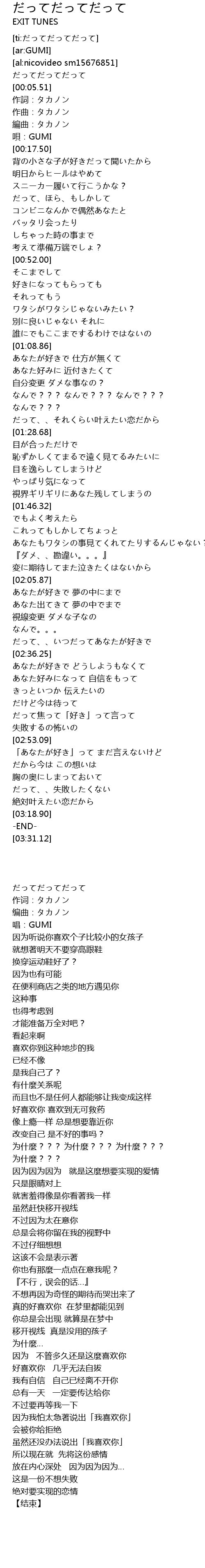| [01:19.54] | なんで??? なんで??? なんで??? なんで??? |