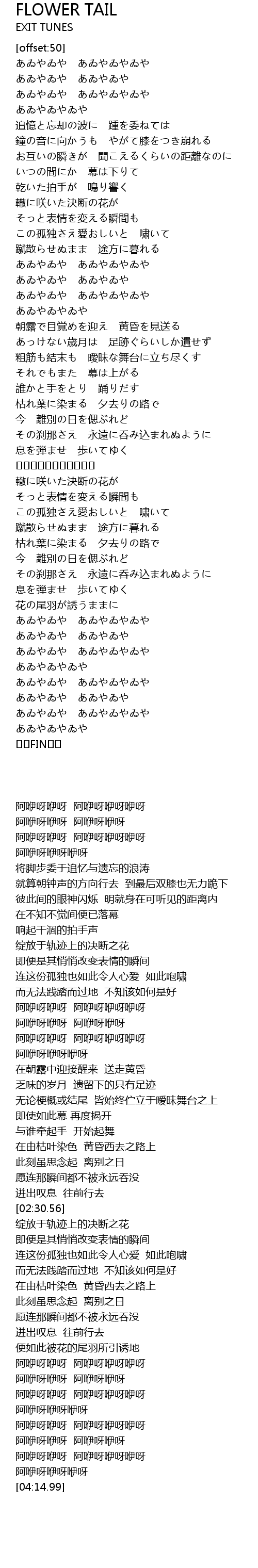 | [02:30.56] | ✿❀✿❀✿❀✿❀✿❀✿ |