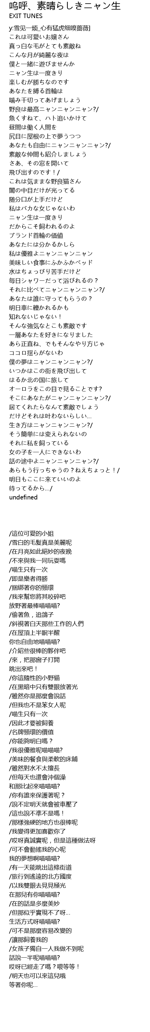 | [01:39.71] | 私は優雅よニャンニャンニャン |