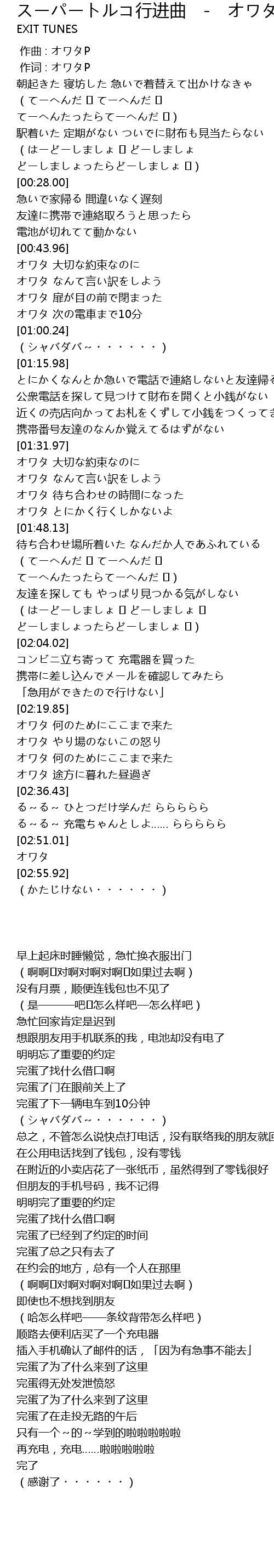 | [01:44.01] | オワタ とにかく行くしかないよ |