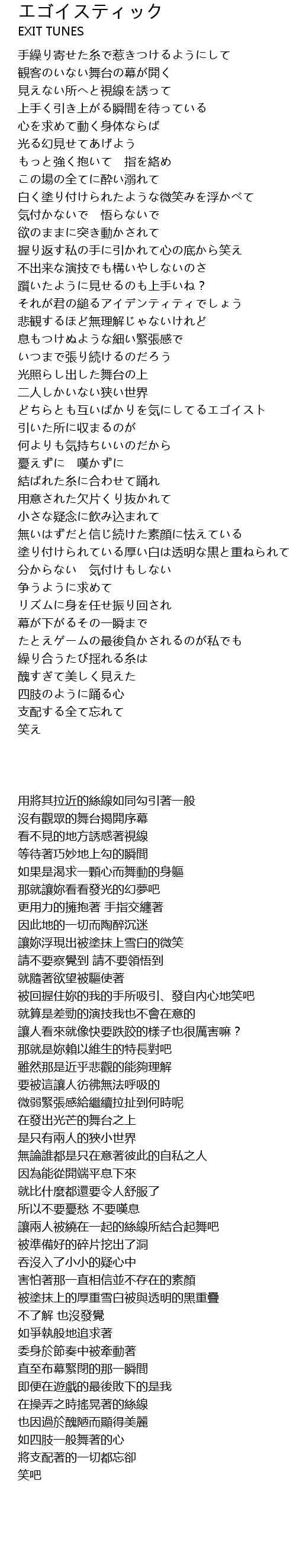 | [01:59.77] | どちらとも互いばかりを気にしてるエゴイスト |