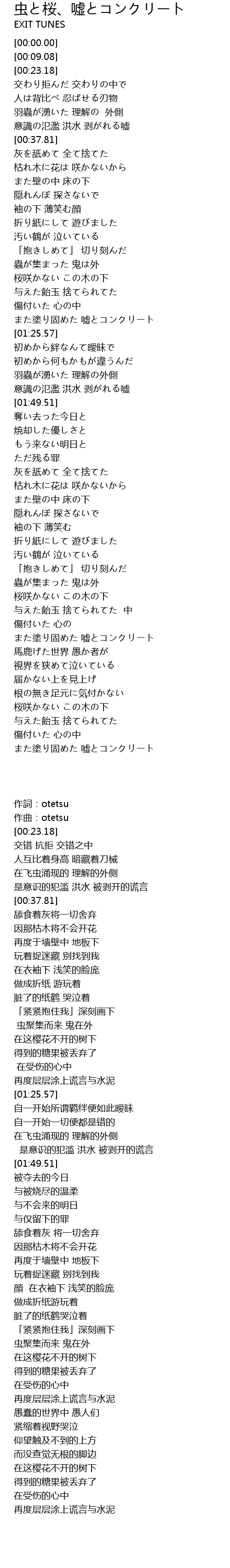| [01:45.06] | 意識の氾濫 洪水 剥がれる嘘 |
