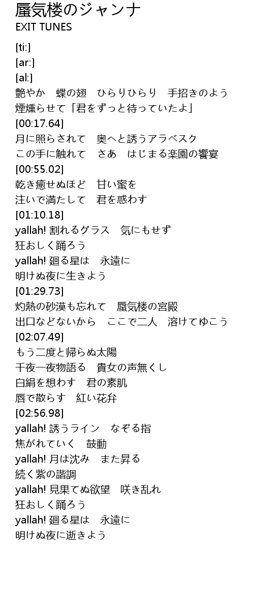 | [03:13.42] | yallah! 見果てぬ欲望 咲き乱れ |