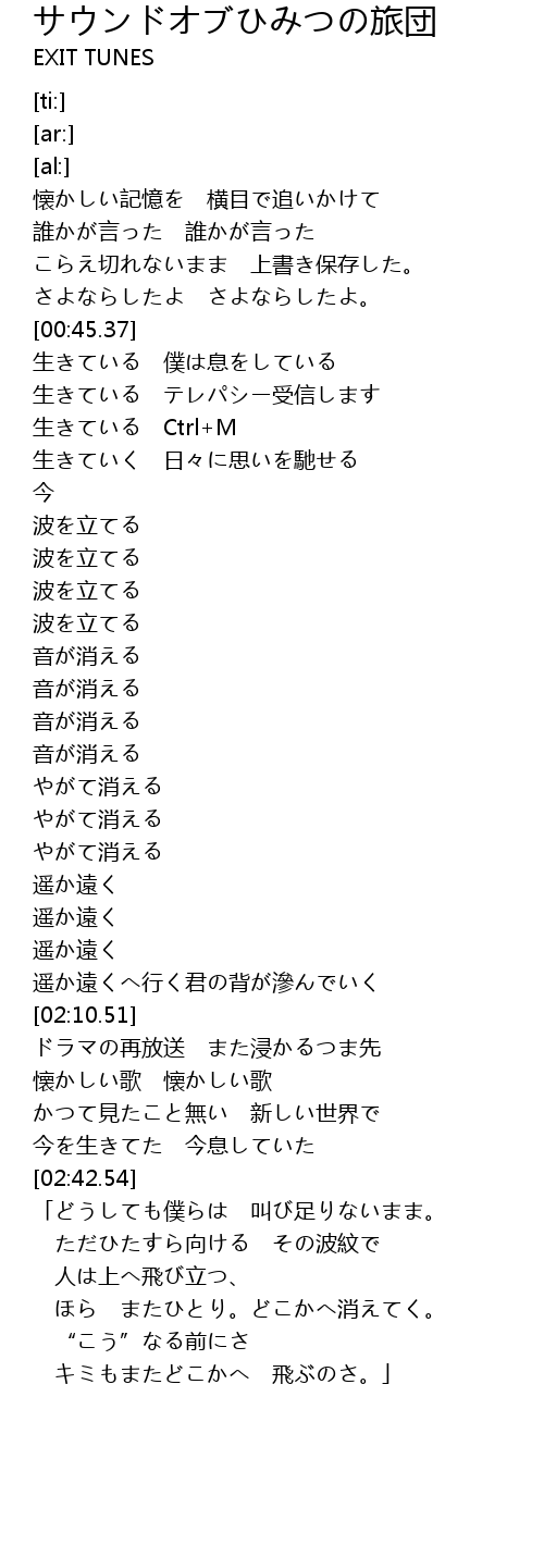| [00:40.08] | さよならしたよ さよならしたよ。 |