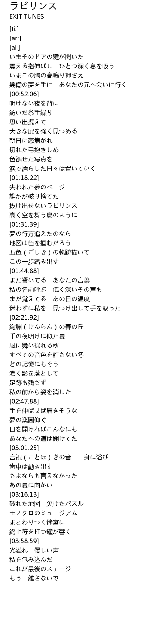 | [01:25.76] | 抜け出せないラビリンス |
