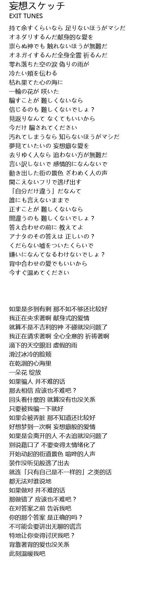 | [01:32.72] | 夢見ていたいの 妄想癖な愛を |