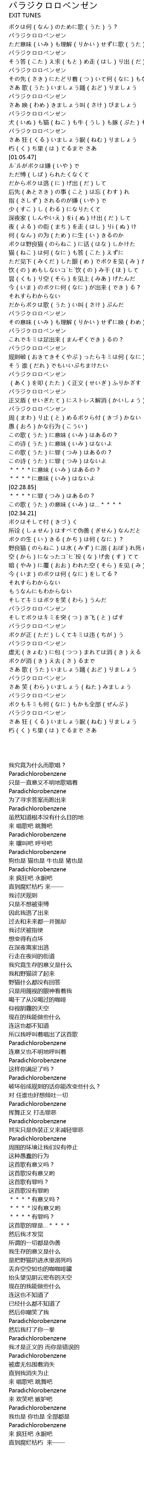 | Song | パラジクロロベンゼン |