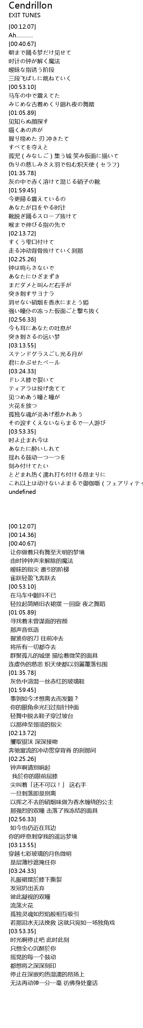 | [01:00.35] | みじめな古着めくり廻れ夜の舞踏 |