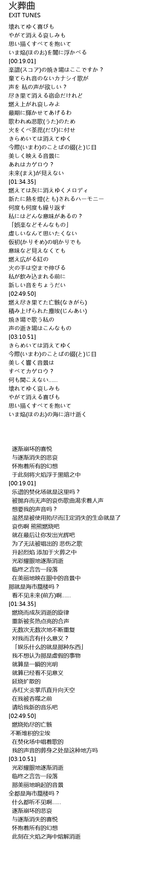 | [01:52.70] | 燃えては灰に消えゆくメロディ |