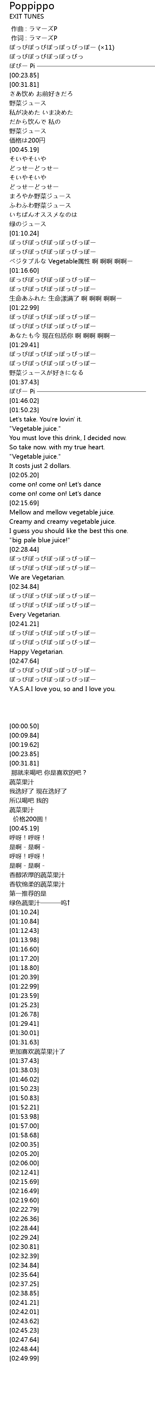 | [01:18.80] | ぽっぴぽっぴぽっぽっぴっぽー |