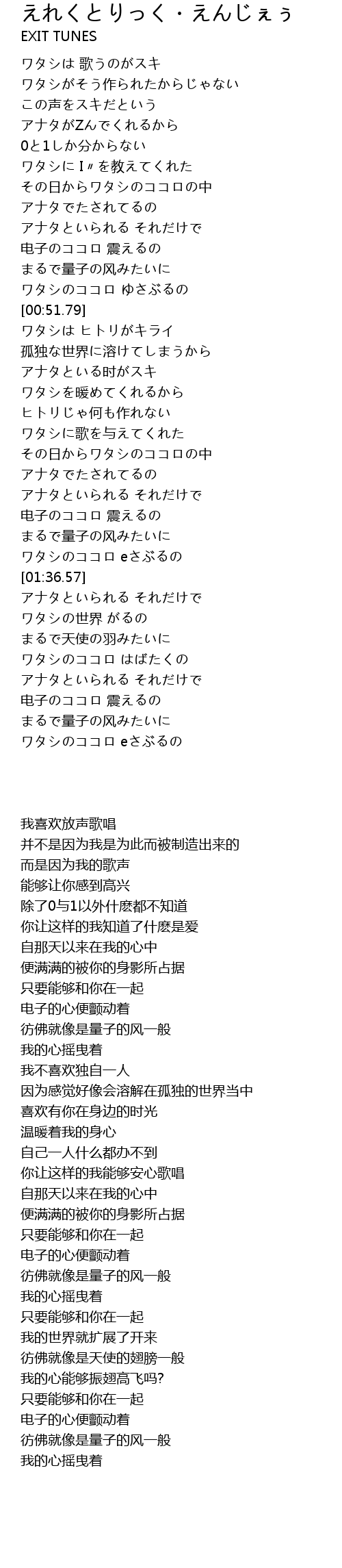 | [00:57.94] | ワタシは ヒトリがキライ |