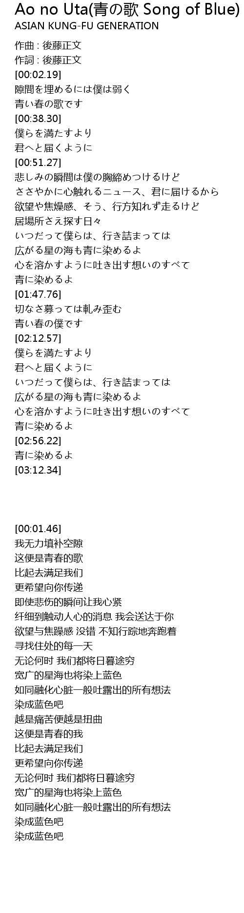 | Song | Ao no Uta(青の歌 Song of Blue) |