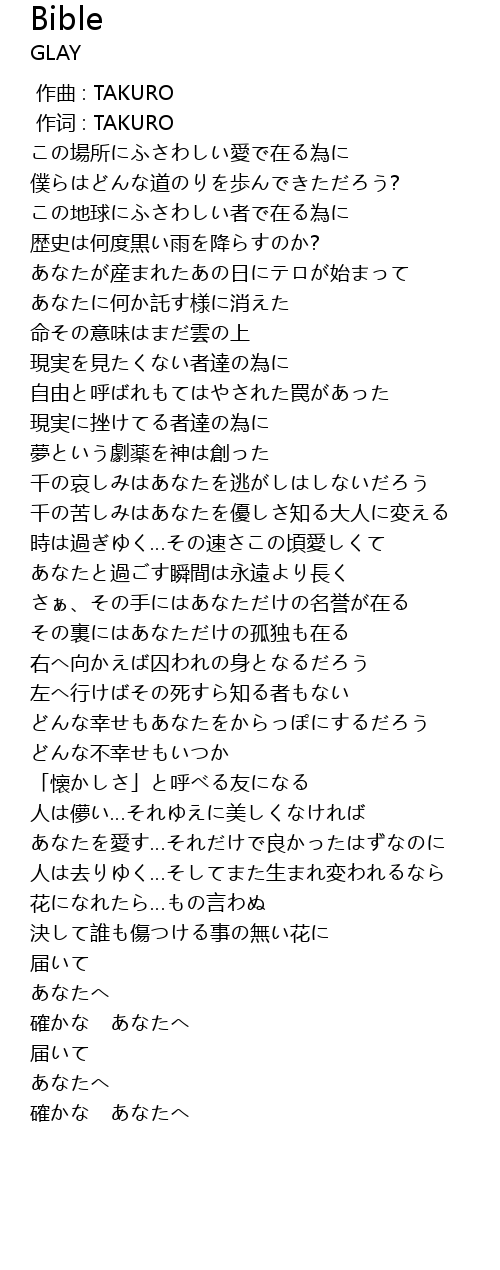 | [00:01.00] | 作词 : TAKURO |