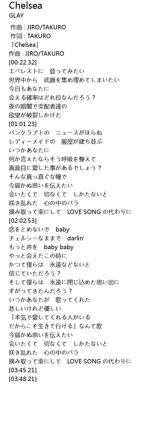 | [00:01.32] | 「Chelsea」 |