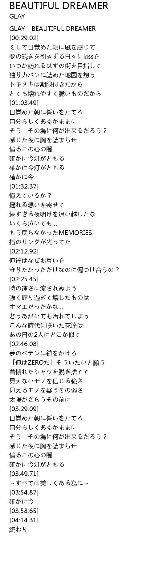 | [00:00.00] | GLAY BEAUTIFUL DREAMER |