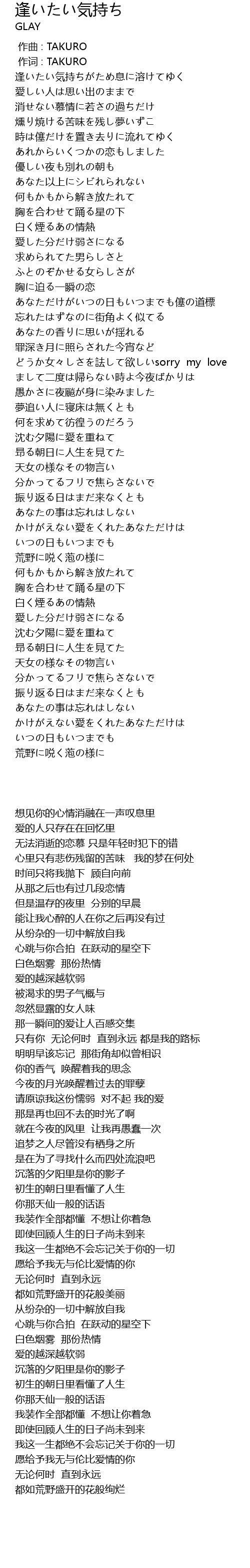 | [01:42.44] | 胸に迫る一瞬の恋 |