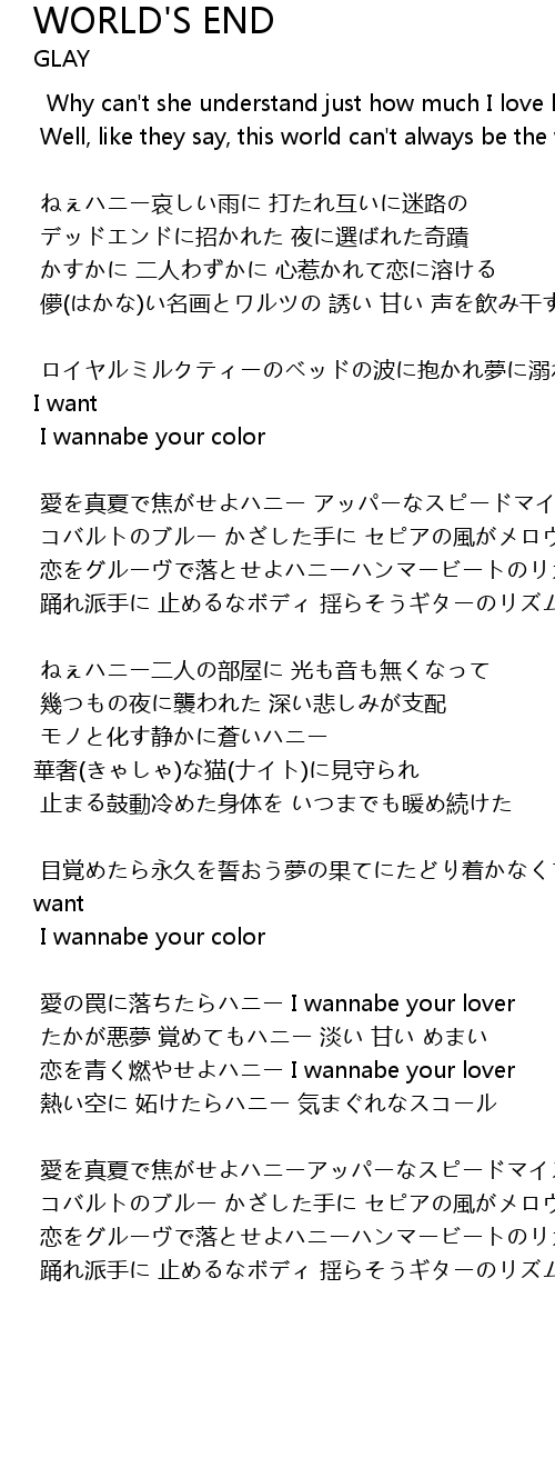 | Song | WORLD'S END |