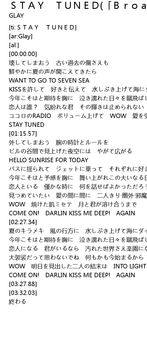 | [01:12.42] | STAY TUNED |