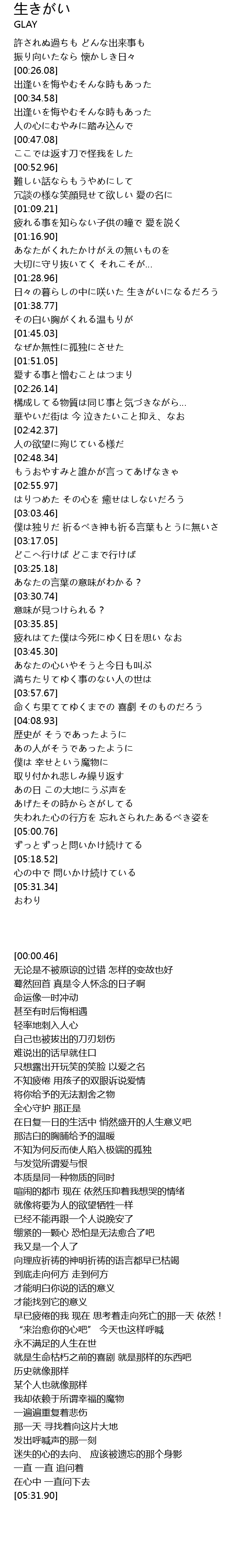 | [00:15.58] | 許されぬ過ちも どんな出来事も |