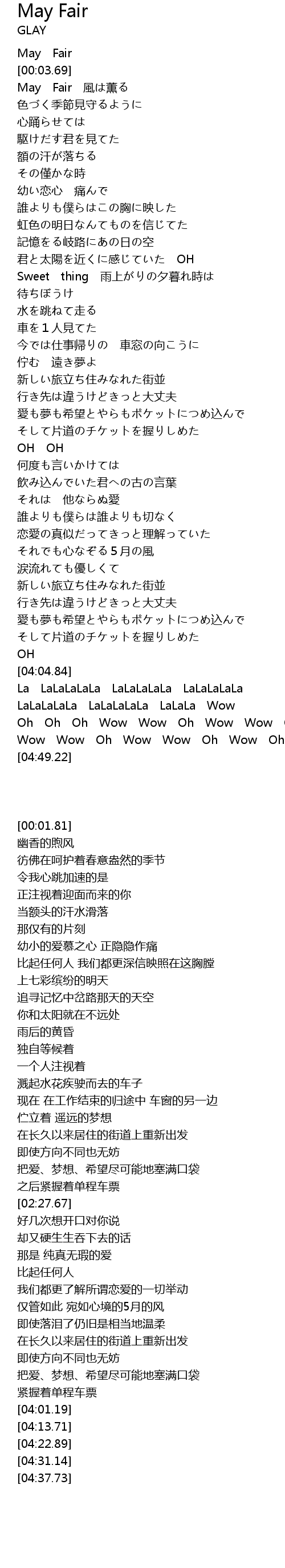 | [04:13.71] | La LaLaLaLaLa LaLaLaLaLa LaLaLaLaLa |