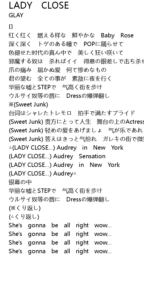 | Song | LADY CLOSE |