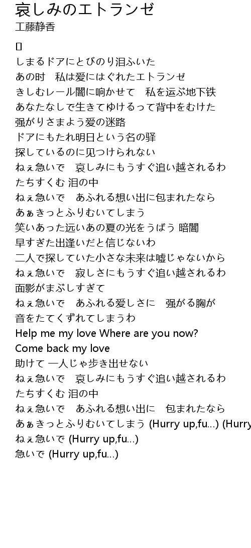 | あぁきっとふりむいてしまう (Hurry up,fu…) (Hurry up,fu…) | |