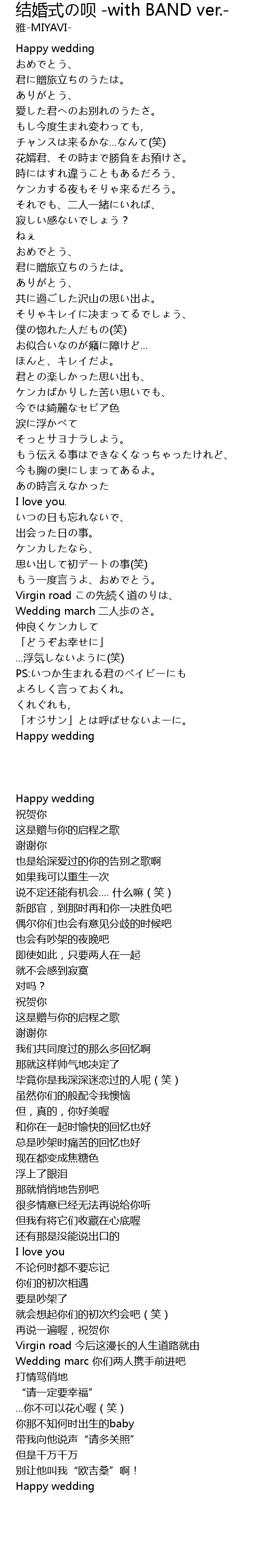 | [03:11.37] | Wedding march 二人歩のさ。 |