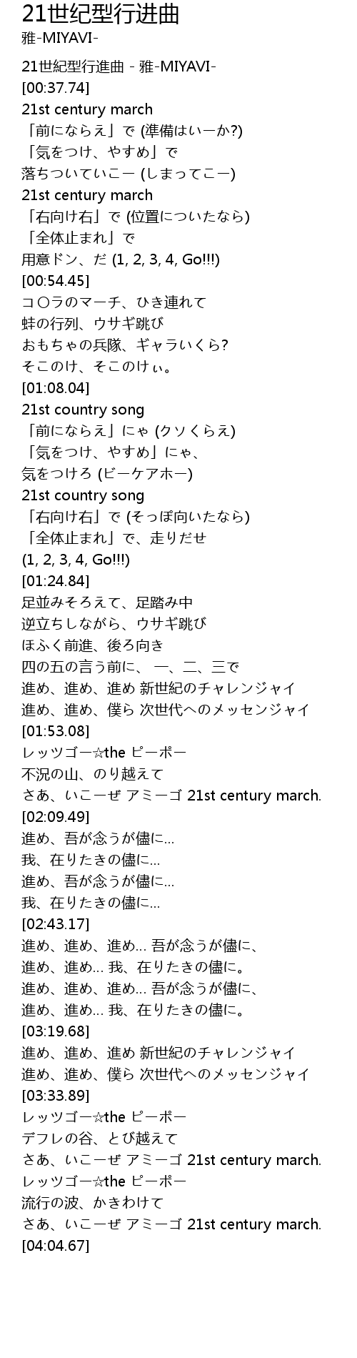 | [00:00.00] | 21世紀型行進曲 - 雅-MIYAVI- |