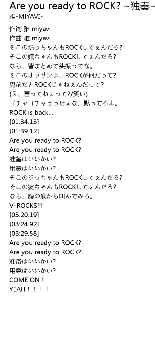 | [00:50.66] | そこの嬢ちゃんもROCKしてぇんだろ? |