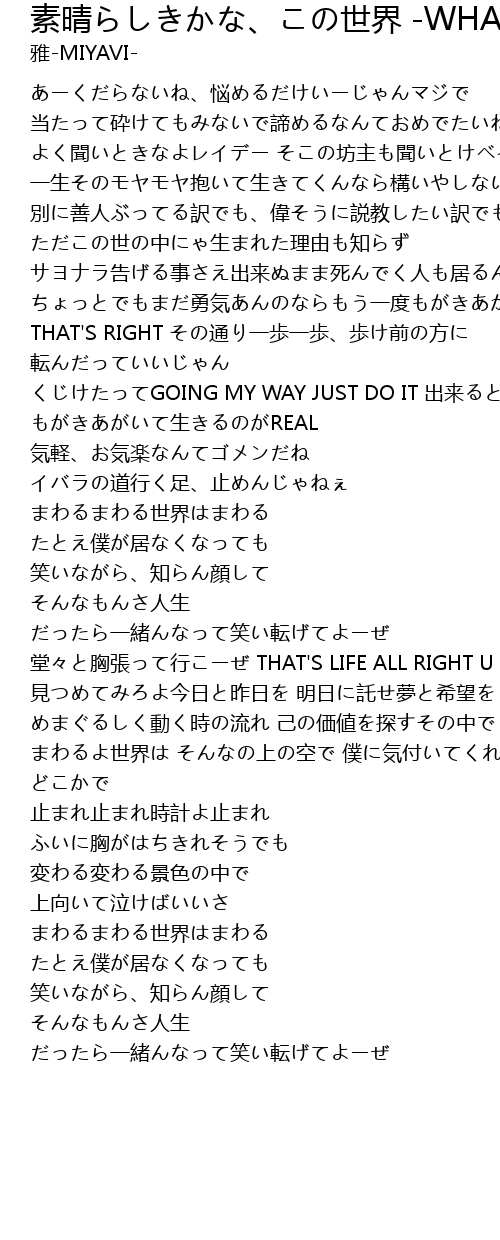 | まわるよ世界は そんなの上の空で 僕に気付いてくれ どこかで | |