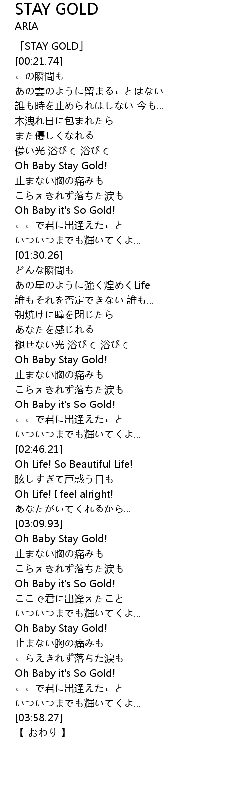 | [03:23.75] | Oh Baby it' s So Gold! |