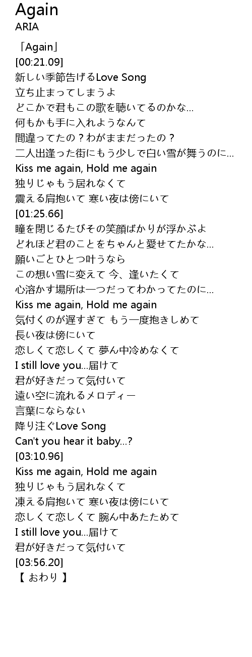 | [01:04.30] | Kiss me again, Hold me again |