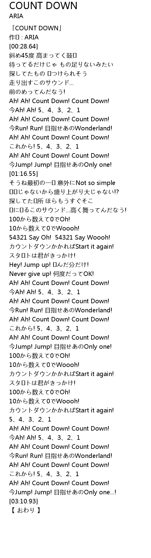 | [03:02.84] | Ah! Ah! Count Down! Count Down! |