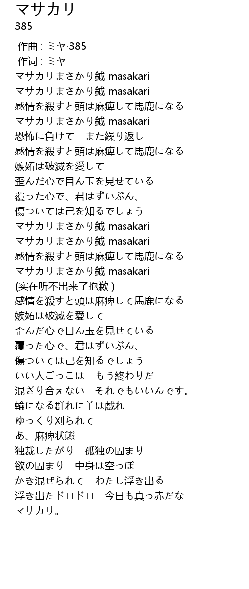 | [00:00.000] | 作曲 : ミヤ·385 |