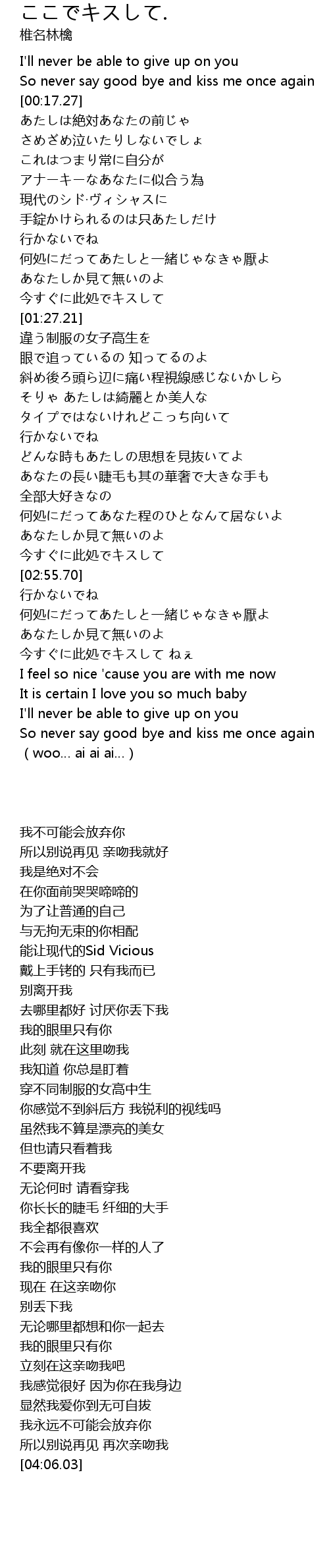 | [03:33.59] | 今すぐに此処でキスして ねぇ |